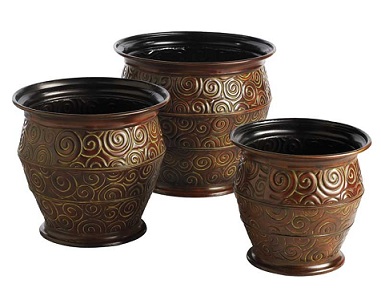 238936,(Top Photo),,ANTIQUE GOLD WITH VERDE SPIRAL NESTED PLANTER SET/3. IRON.,,17 X 17 X 17,18.80 X 18.60 X 15.90,