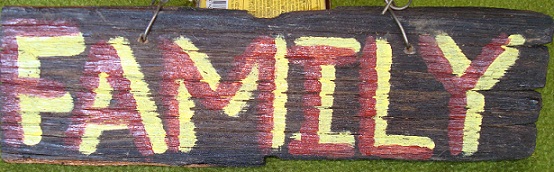 "FAMILY" SIGN APPROX 14"L X 5"W X 1/2" THICK IN SIZE. PAINTED IN RED AND YELLOW LETTERING. WIRE FOR HANGING. MADE FROM RECLAIMED ANTIQUE KENTUCKY BARNWOOD. SOLID WOOD, DISTRESSED. POLYED FOR OUTDOOR USE.