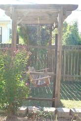 The photo above (left) shows the cross beams added to the top of the pergola that will be the porch swing support.