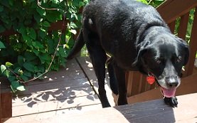 The pet photo below shows CJ coming up our stairs to the Deck.